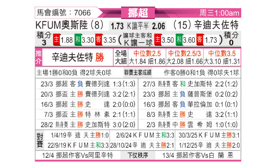 [挪超] KFUM奥斯陆vs桑德菲杰