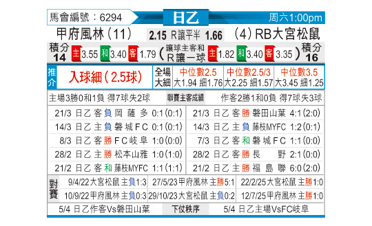 [日职乙] 甲府风林vsRB大宫松鼠